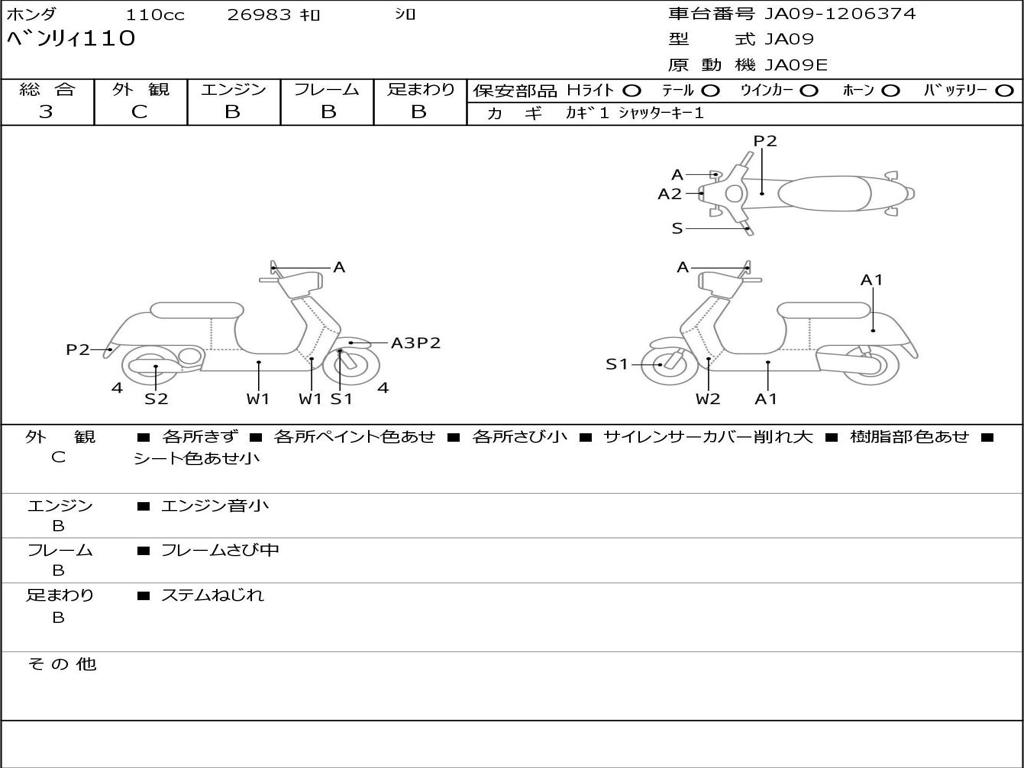 | Номер рамы / VIN | JA09-1206374 |