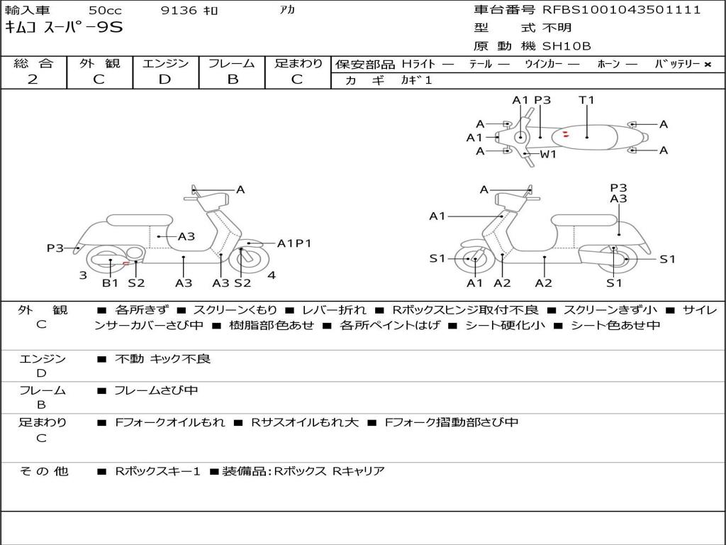| Номер рамы / VIN | RFBS1001043501111 |