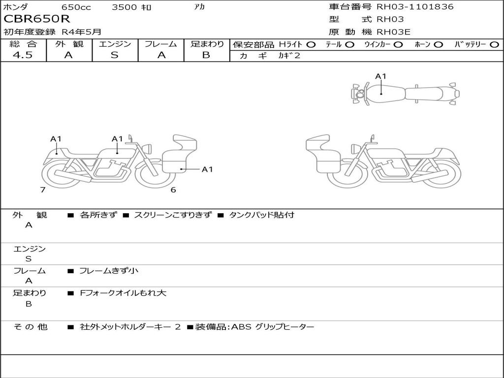 | Номер рамы / VIN | RH03-1101836 |