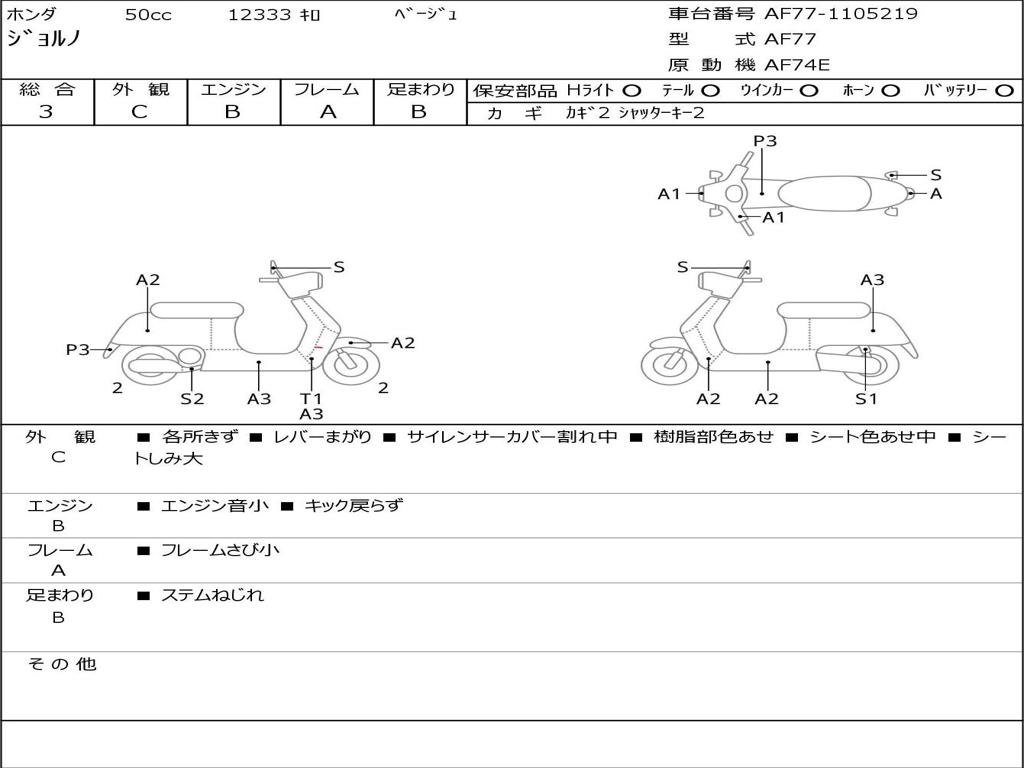 | Номер рамы / VIN | AF77-1105219 |