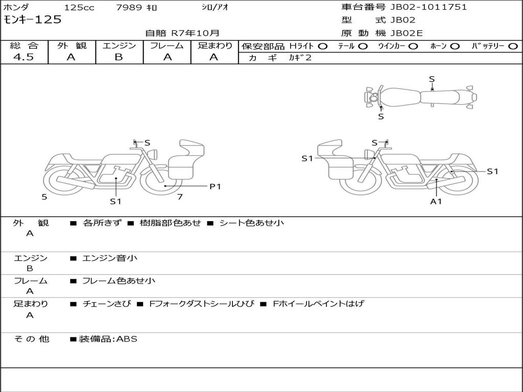 | Номер рамы / VIN | JB02-1011751 |