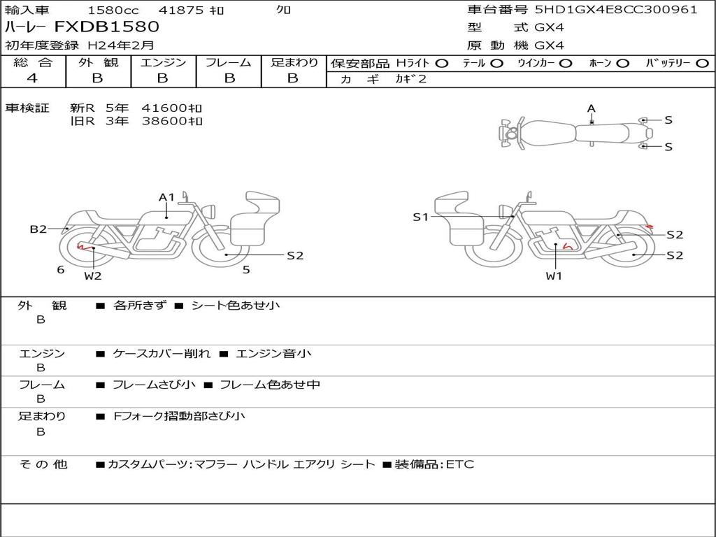| Номер рамы / VIN | 5HD1GX4E8CC300961 |