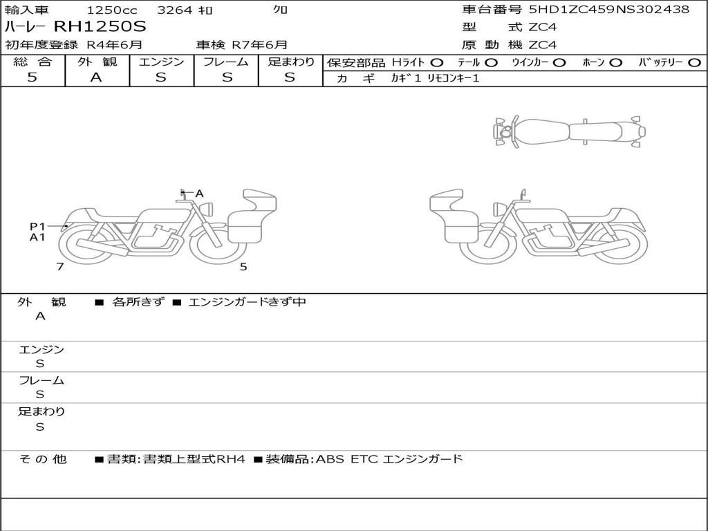 | Номер рамы / VIN | 5HD1ZC459NS302438 |