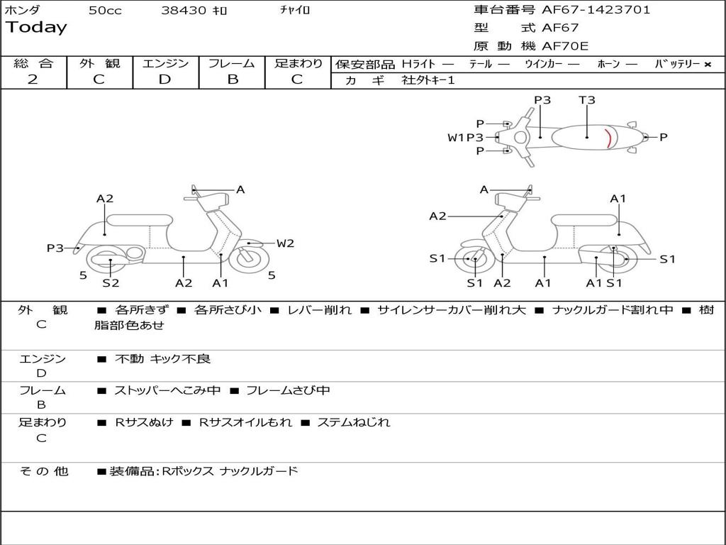 | Номер рамы / VIN | AF67-1423701 |