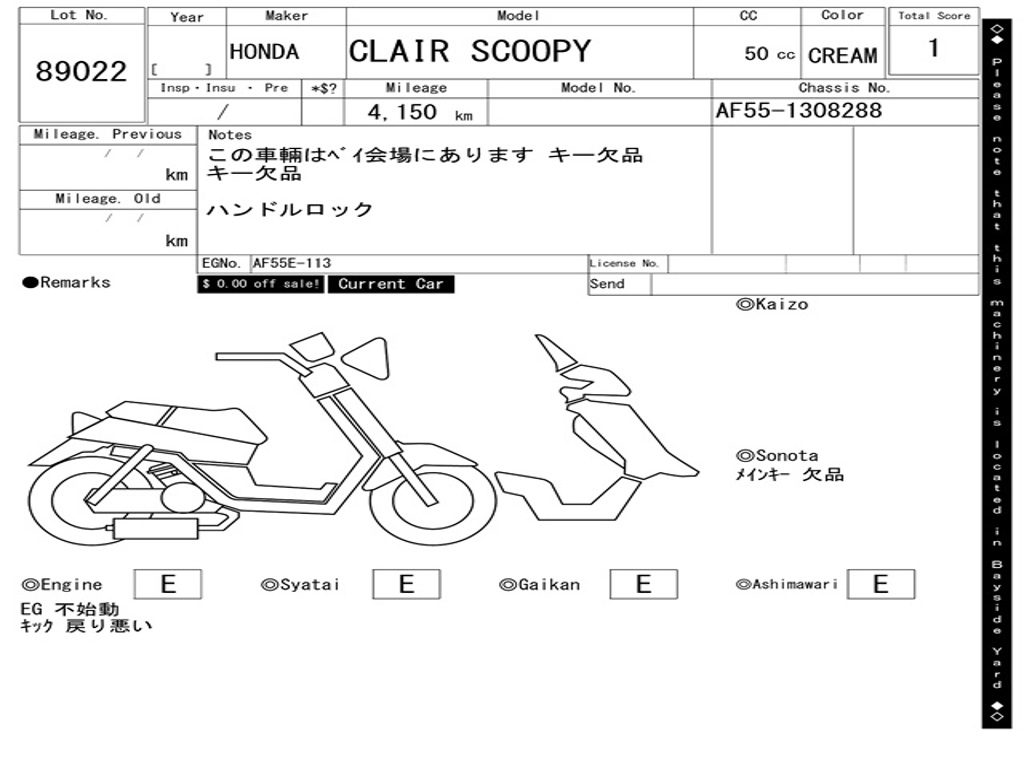 | Номер рамы / VIN | AF55-1308288 |