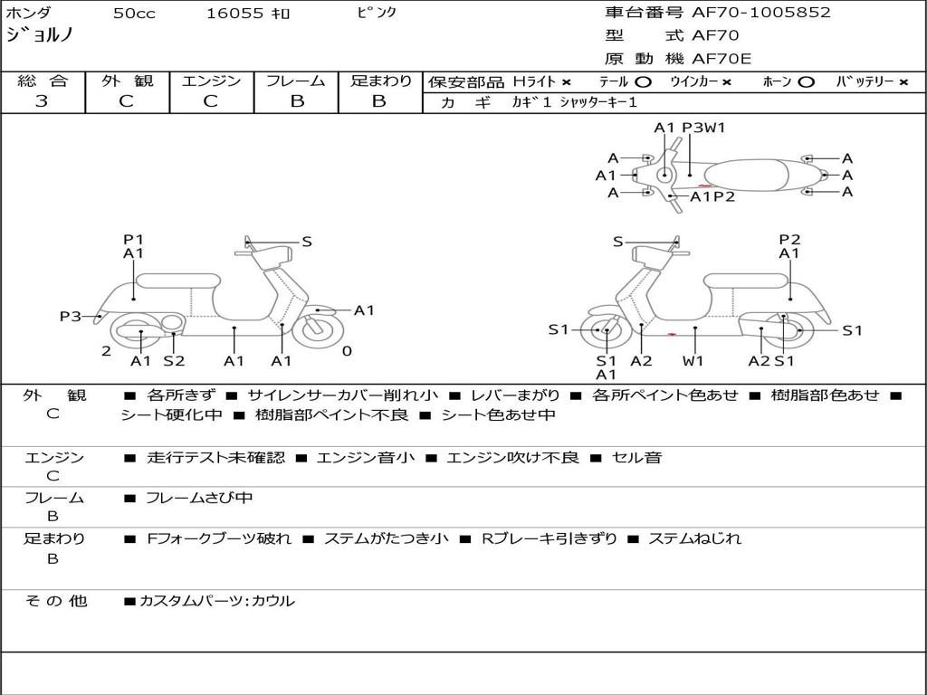 | Номер рамы / VIN | AF70-1005852 |