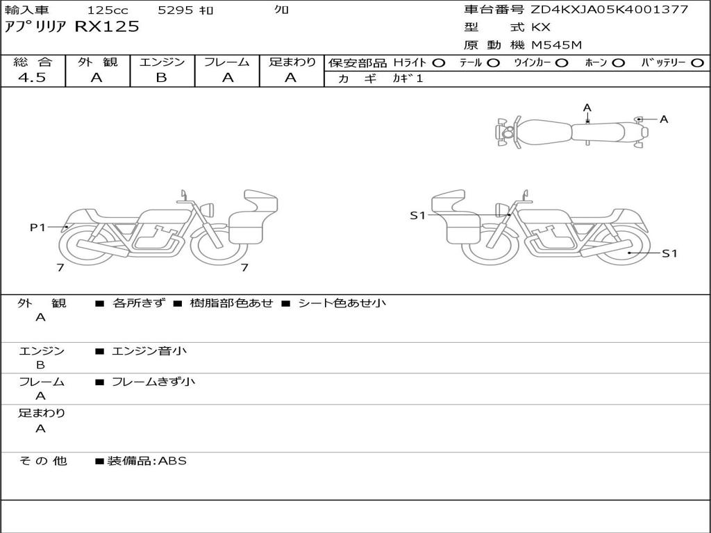 | Номер рамы / VIN | ZD4KXJA05K4001377 |