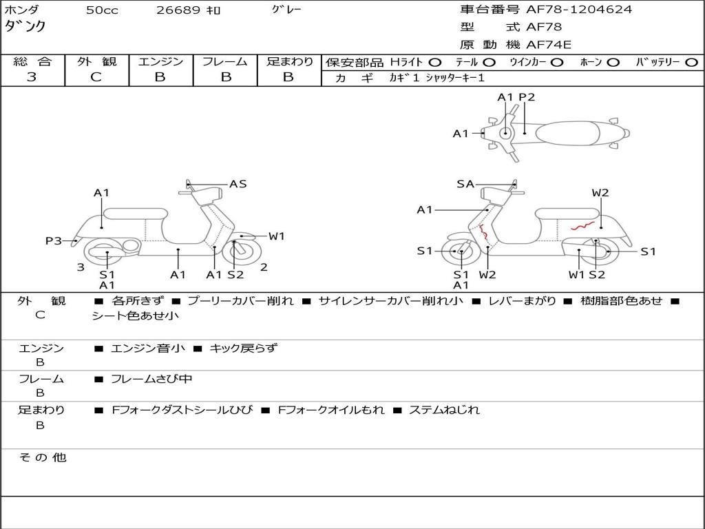 | Номер рамы / VIN | AF78-1204624 |