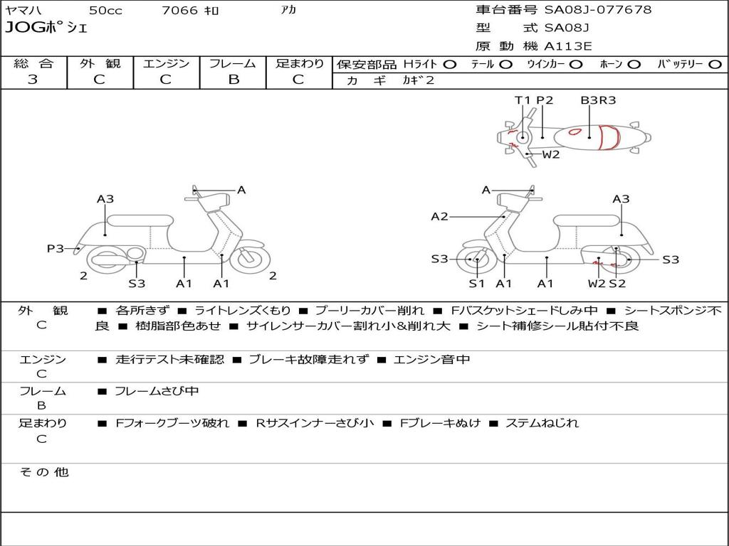 | Номер рамы / VIN | SA08J-077678 |