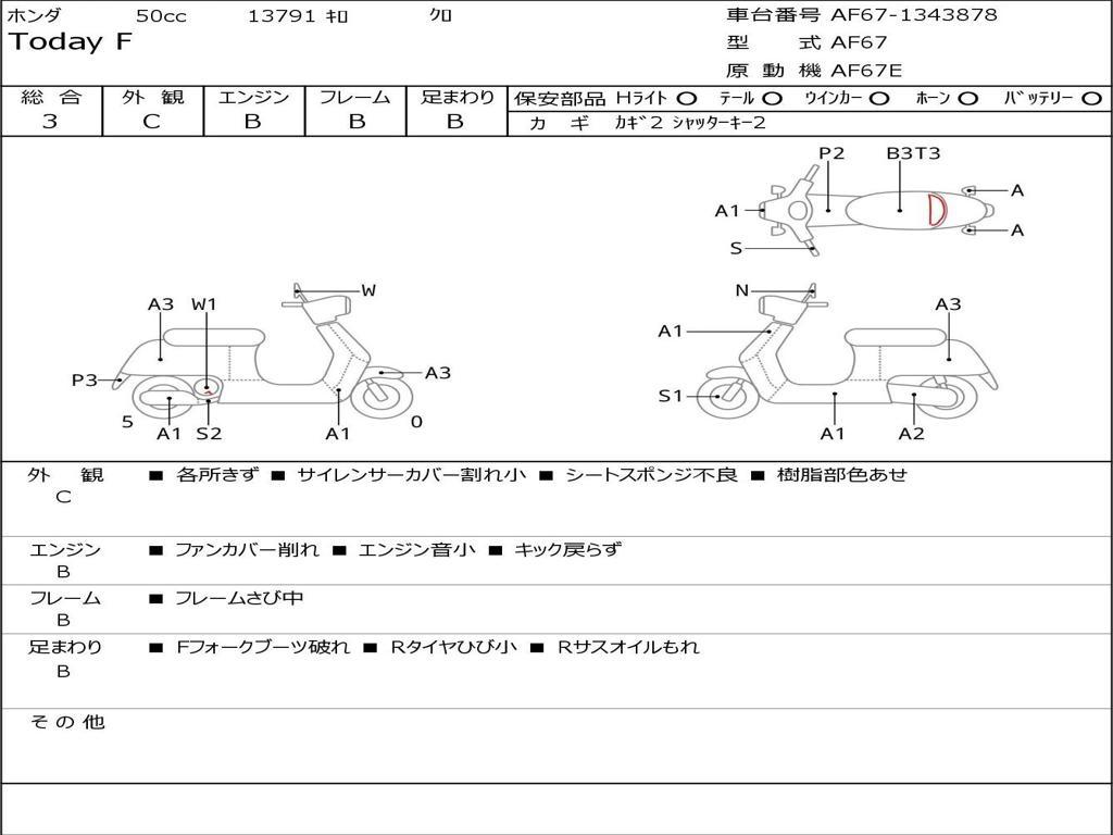 | Номер рамы / VIN | AF67-1343878 |