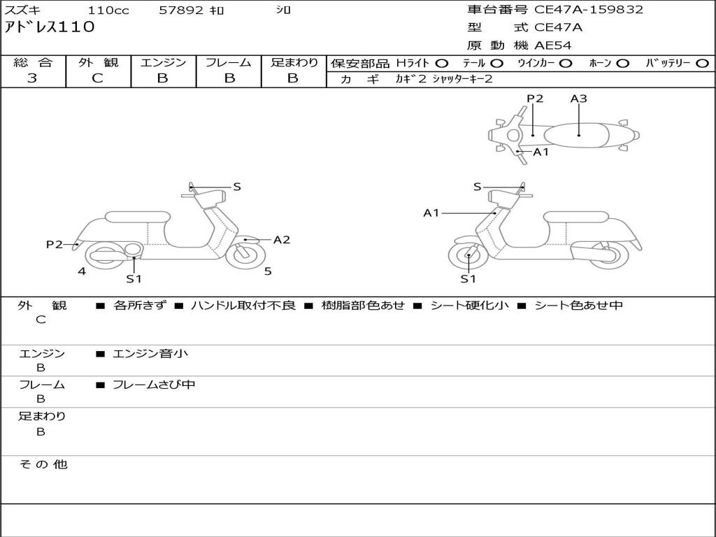 | Номер рамы / VIN | CE47A-159832 |