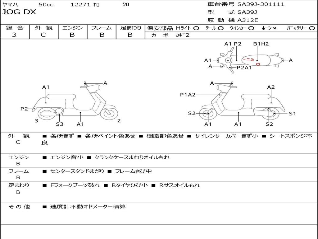 | Номер рамы / VIN | SA39J-301111 |