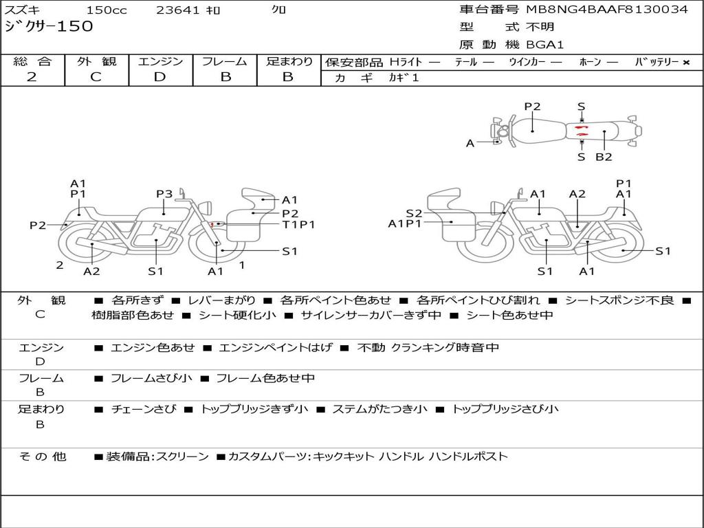 | Номер рамы / VIN | MB8NG4BAAF8130034 |