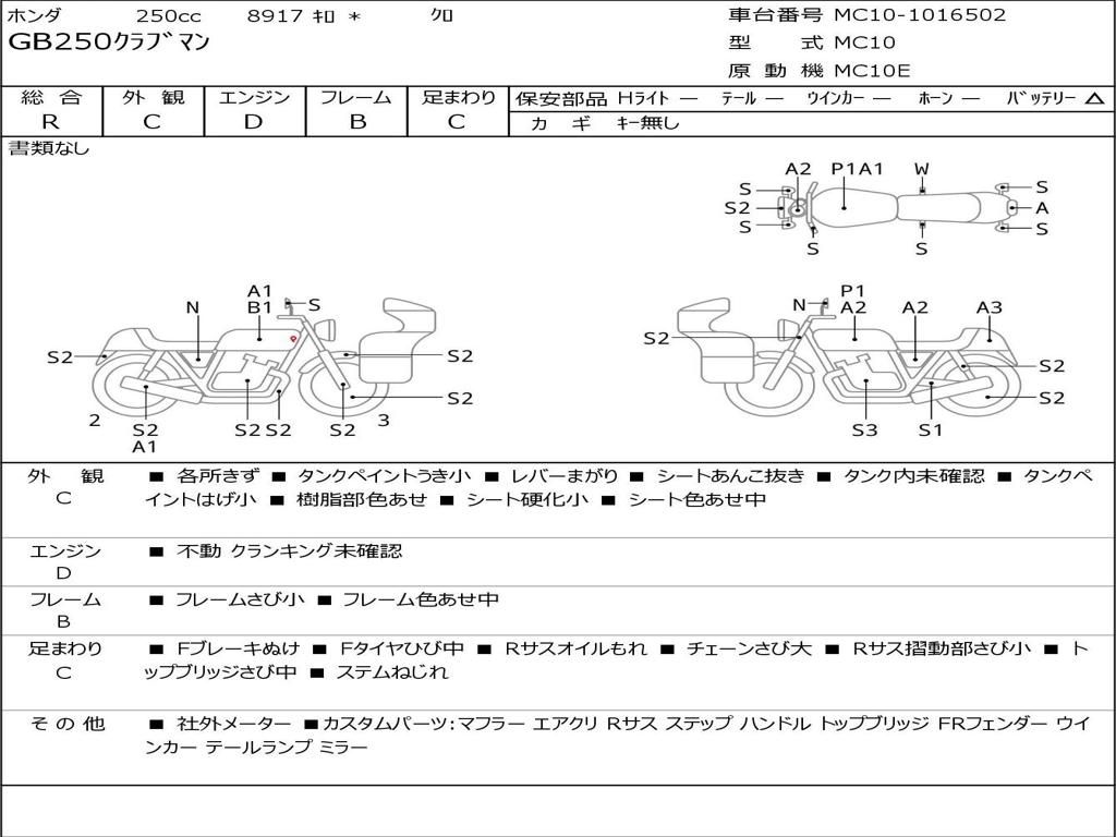 | Номер рамы / VIN | MC10-1016502 |