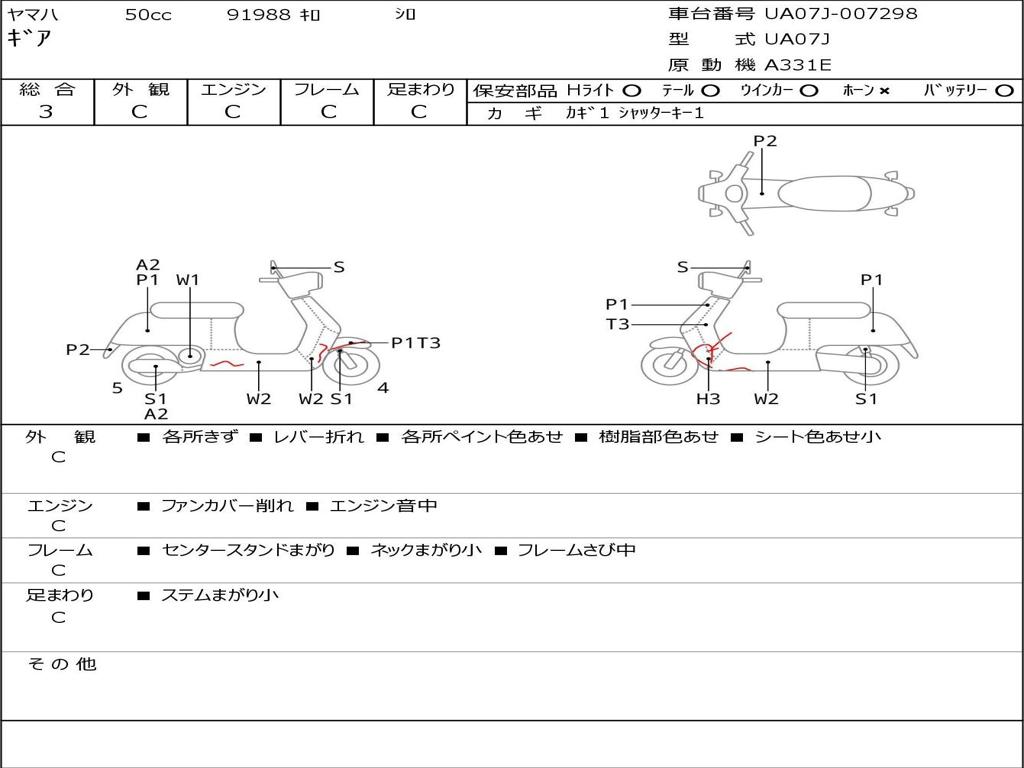 | Номер рамы / VIN | UA07J-007298 |