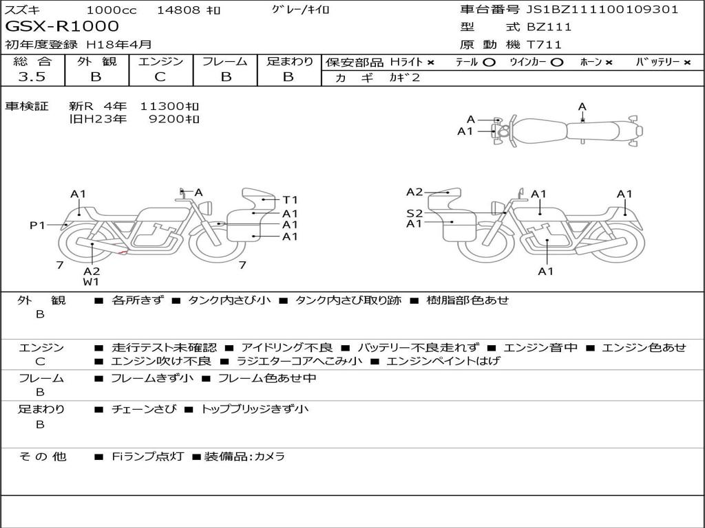 | Номер рамы / VIN | JS1BZ111100109301 |