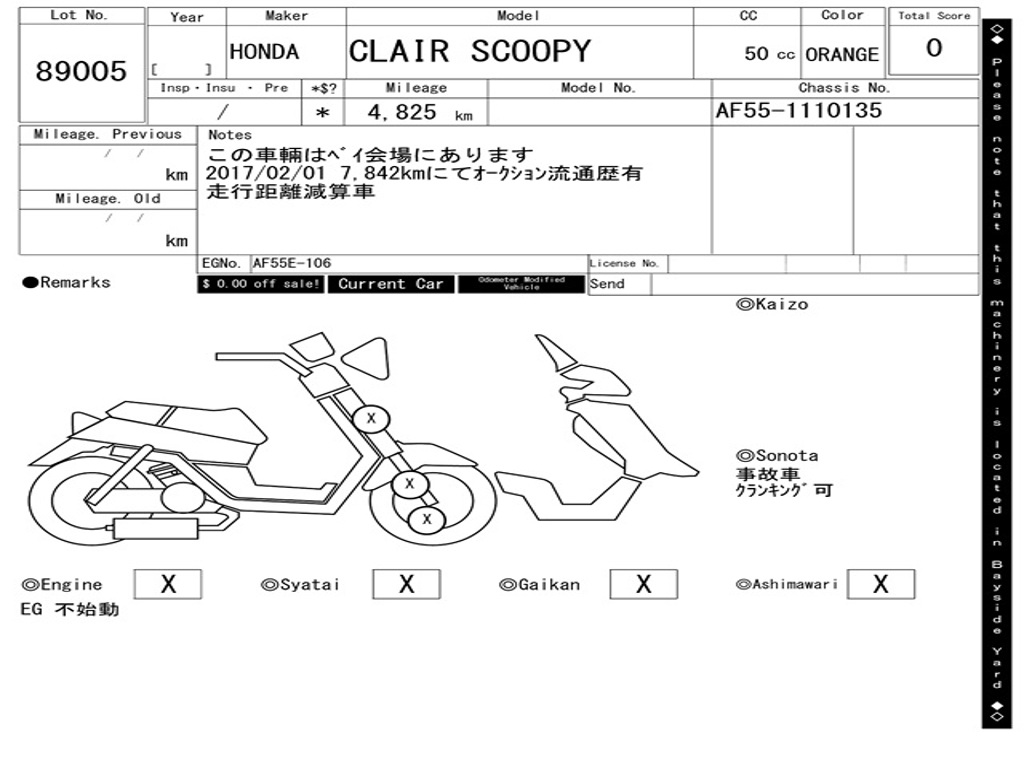 | Номер рамы / VIN | AF55-1110135 |