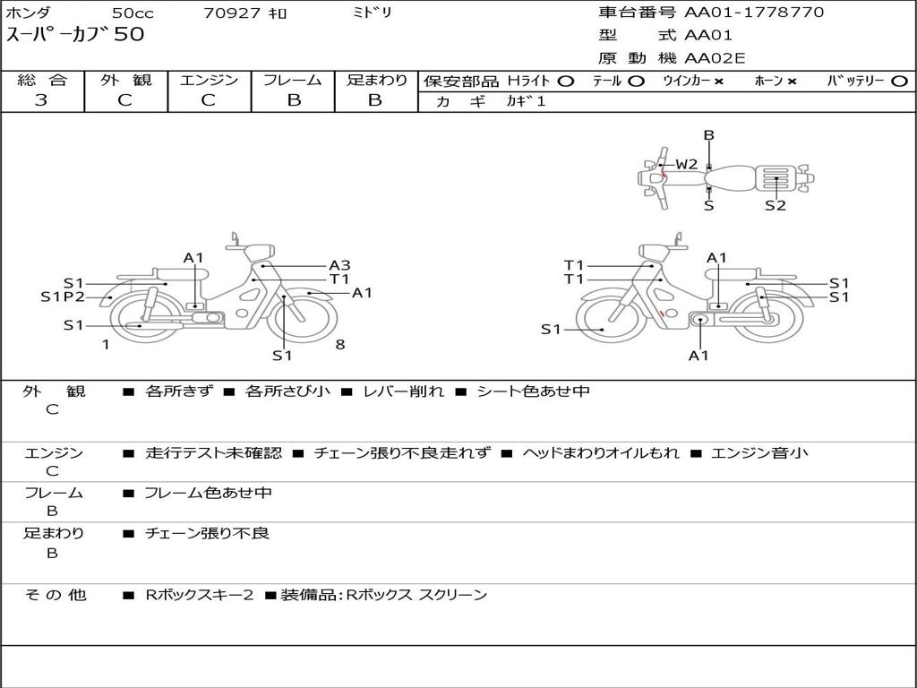 | Номер рамы / VIN | AA01-1778770 |