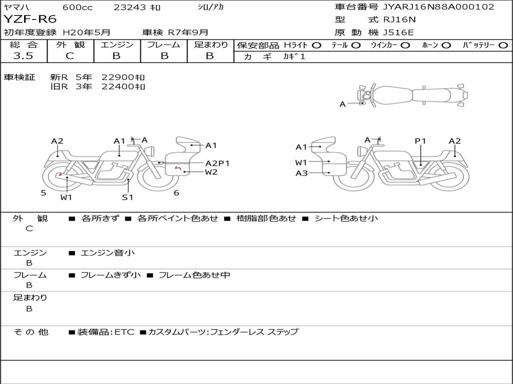 | Номер рамы / VIN | JYARJ16N88A000102 |