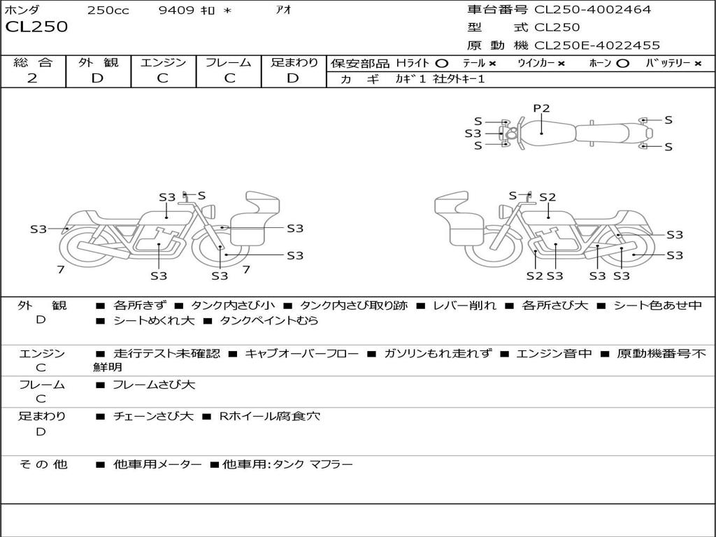 | Номер рамы / VIN | CL250-4002464 |