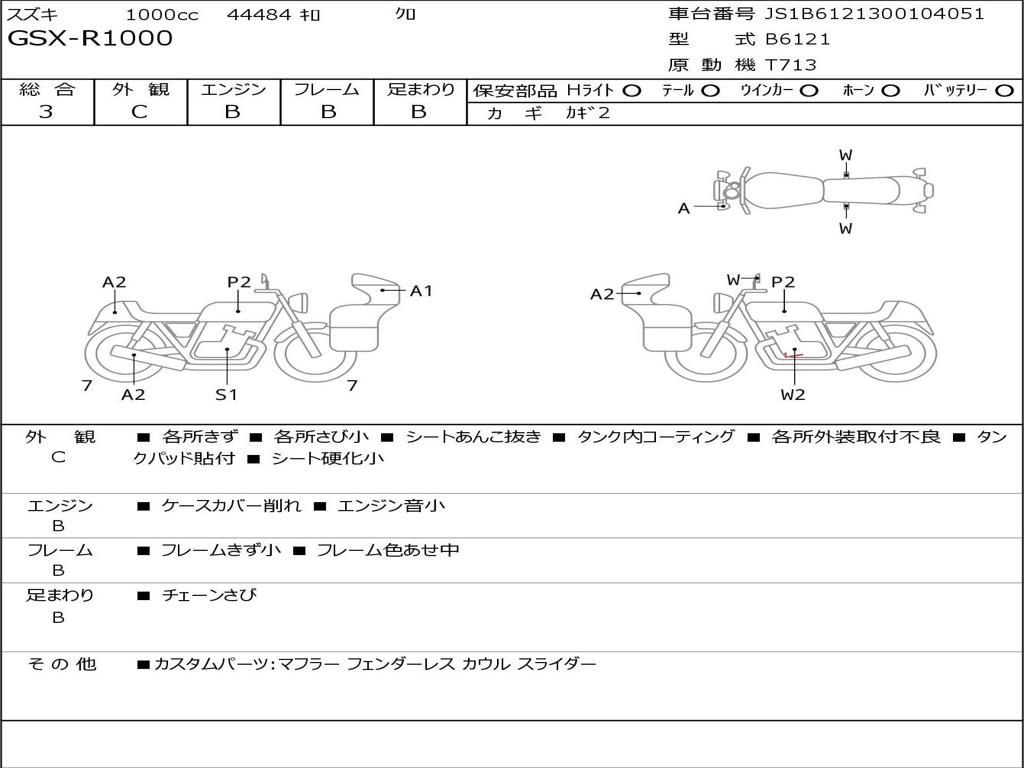| Номер рамы / VIN | JS1B6121300104051 |