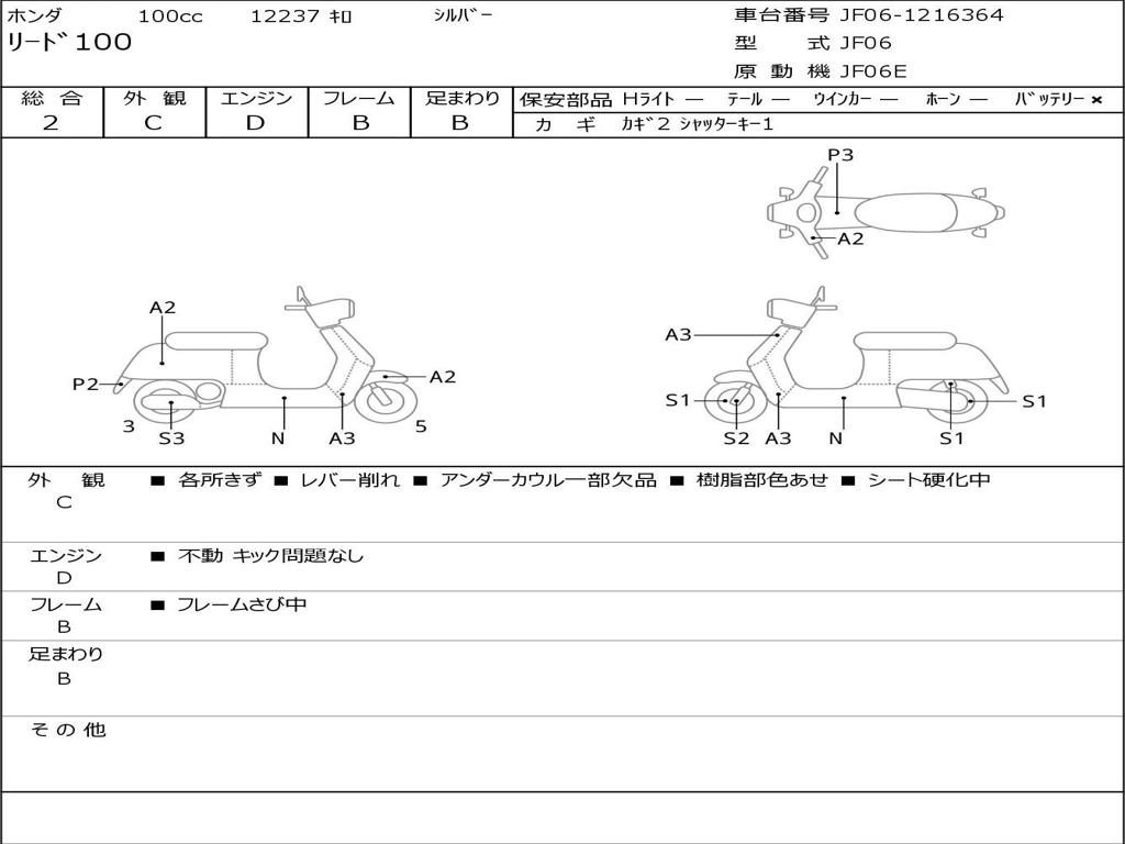 | Номер рамы / VIN | JF06-1216364 |