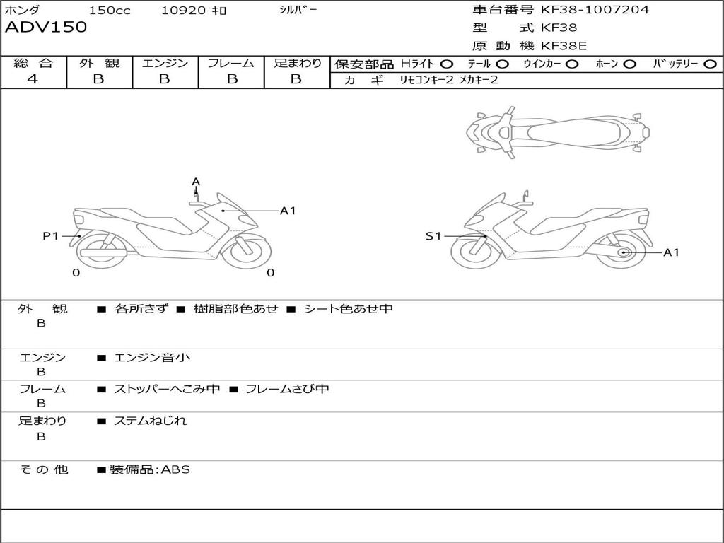 | Номер рамы / VIN | KF38-1007204 |