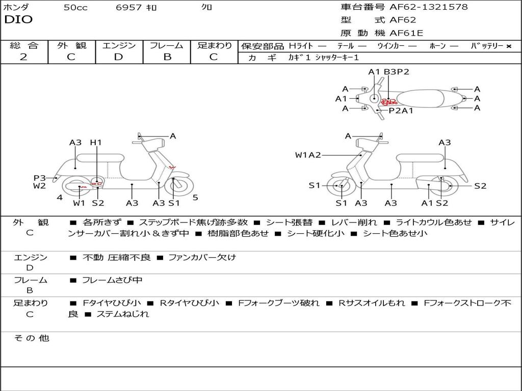 | Номер рамы / VIN | AF62-1321578 |