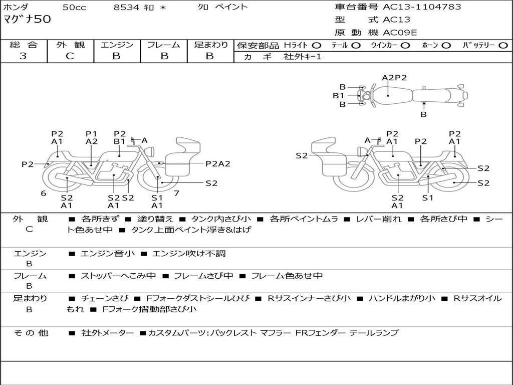 | Номер рамы / VIN | AC13-1104783 |