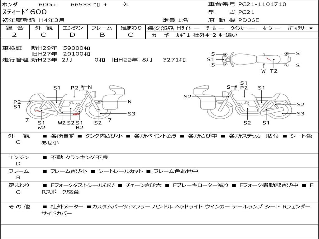 | Номер рамы / VIN | PC21-1101710 |
