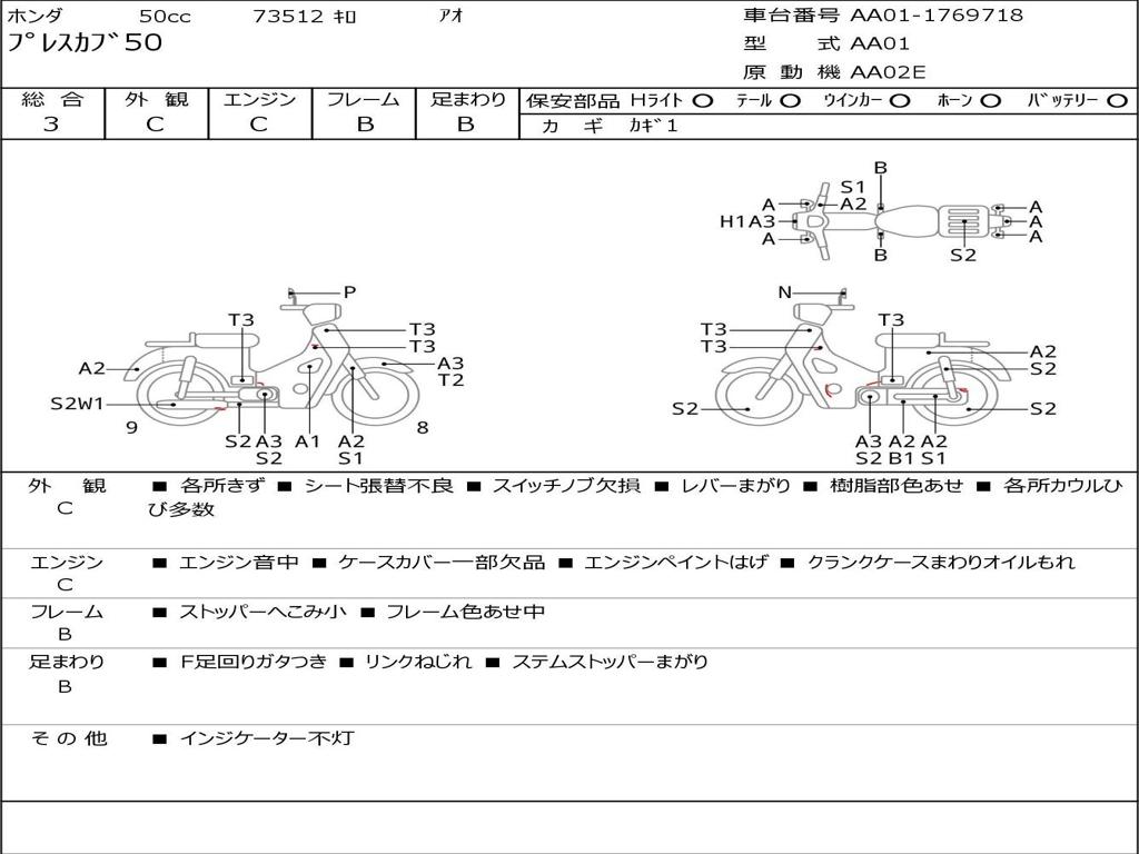 | Номер рамы / VIN | AA01-1769718 |