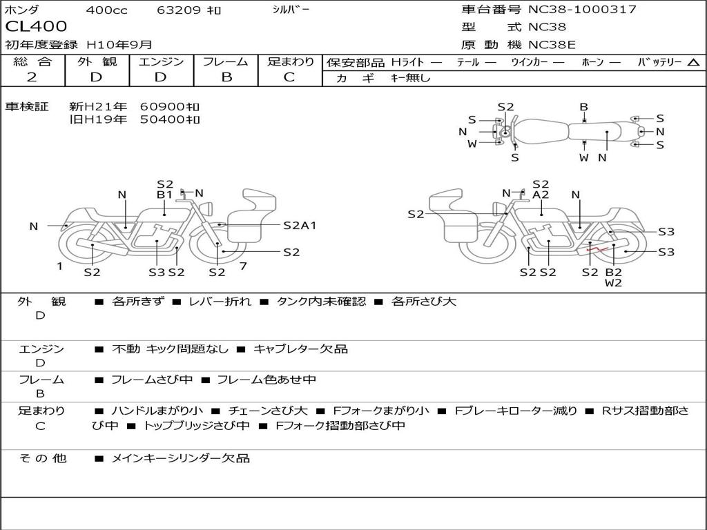 | Номер рамы / VIN | NC38-1000317 |