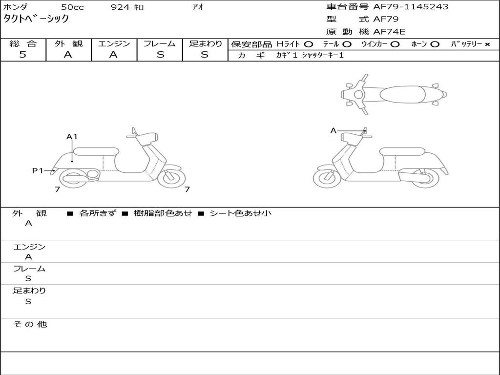| Номер рамы / VIN | AF79-1145243 |