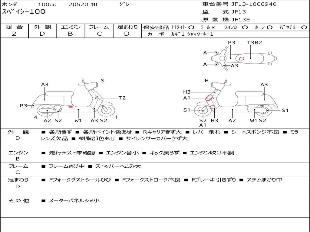 | Номер рамы / VIN | JF13-1006940 |