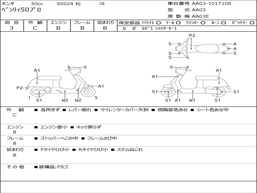 | Номер рамы / VIN | AA03-1017108 |