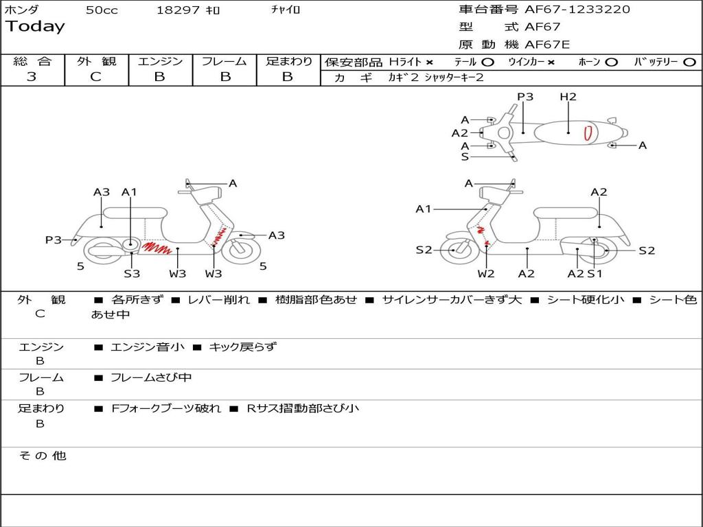 | Номер рамы / VIN | AF67-1233220 |