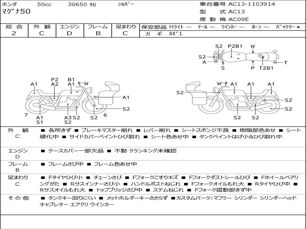 | Номер рамы / VIN | AC13-1103914 |