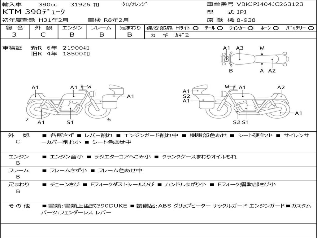 | Номер рамы / VIN | VBKJPJ404JC263123 |