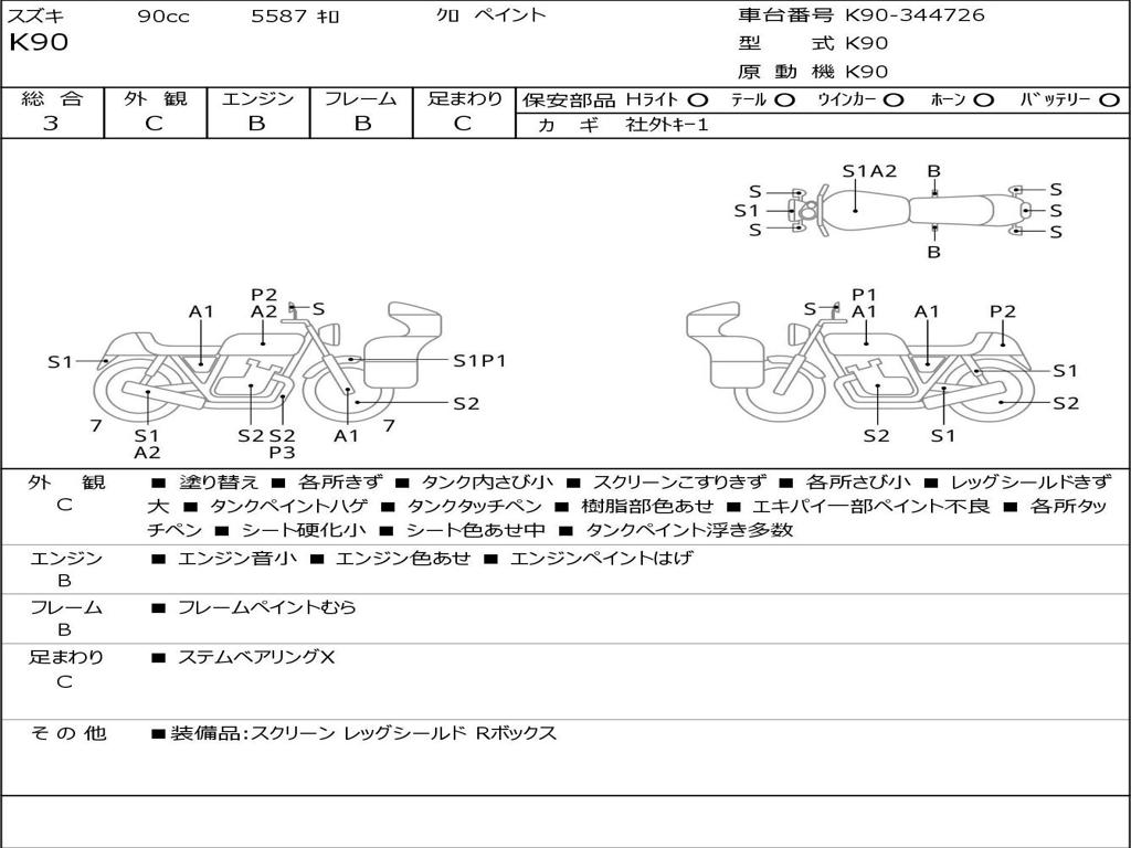 | Номер рамы / VIN | K90-344726 |