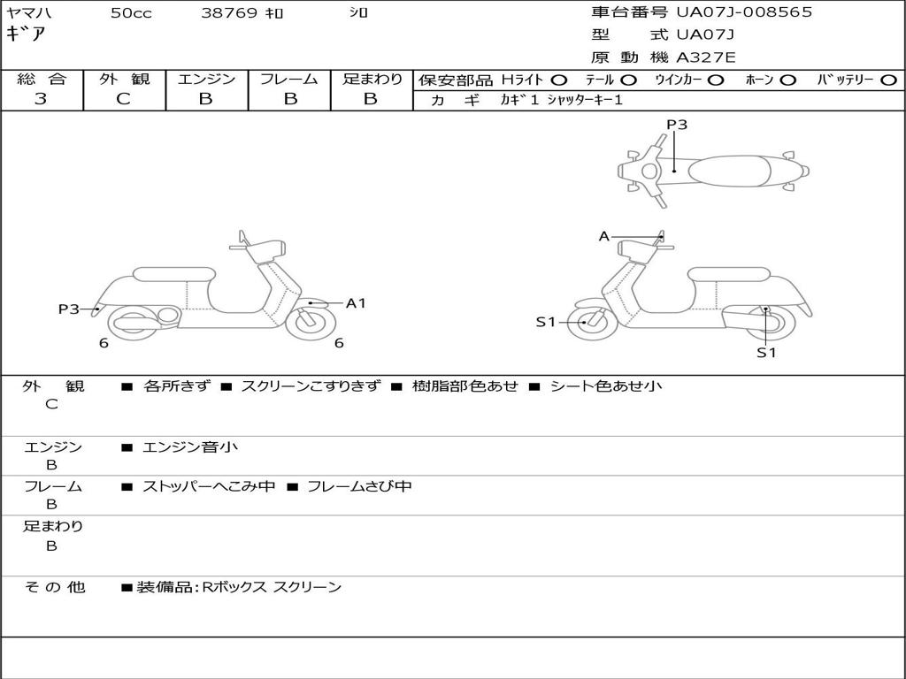 | Номер рамы / VIN | UA07J-008565 |