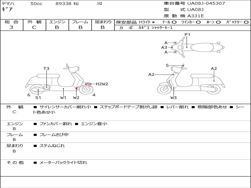 | Номер рамы / VIN | UA08J-045307 |