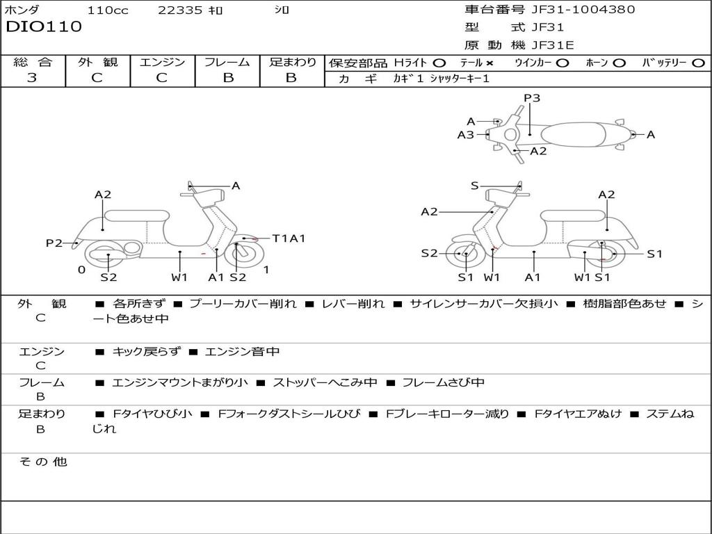 | Номер рамы / VIN | JF31-1004380 |