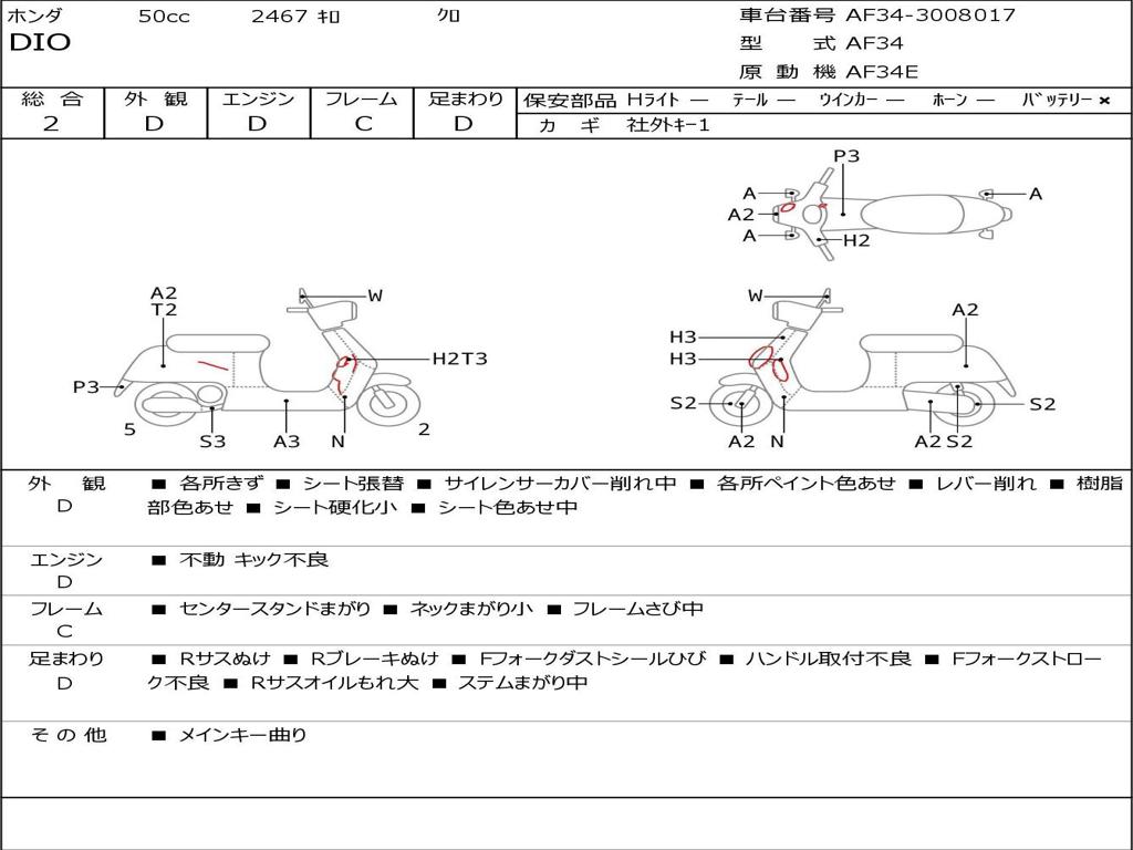 | Номер рамы / VIN | AF34-3008017 |