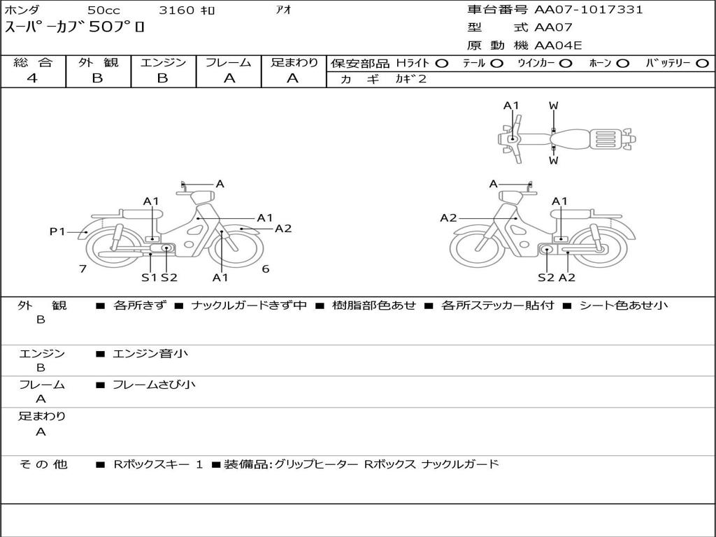 | Номер рамы / VIN | AA07-1017331 |