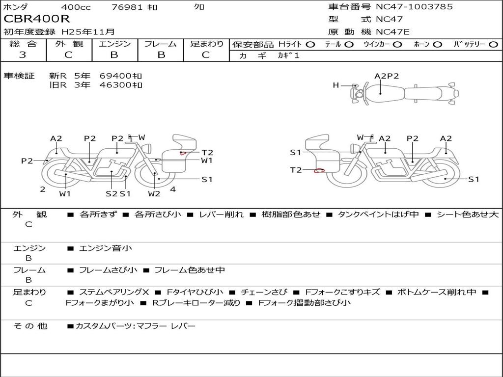| Номер рамы / VIN | NC47-1003785 |