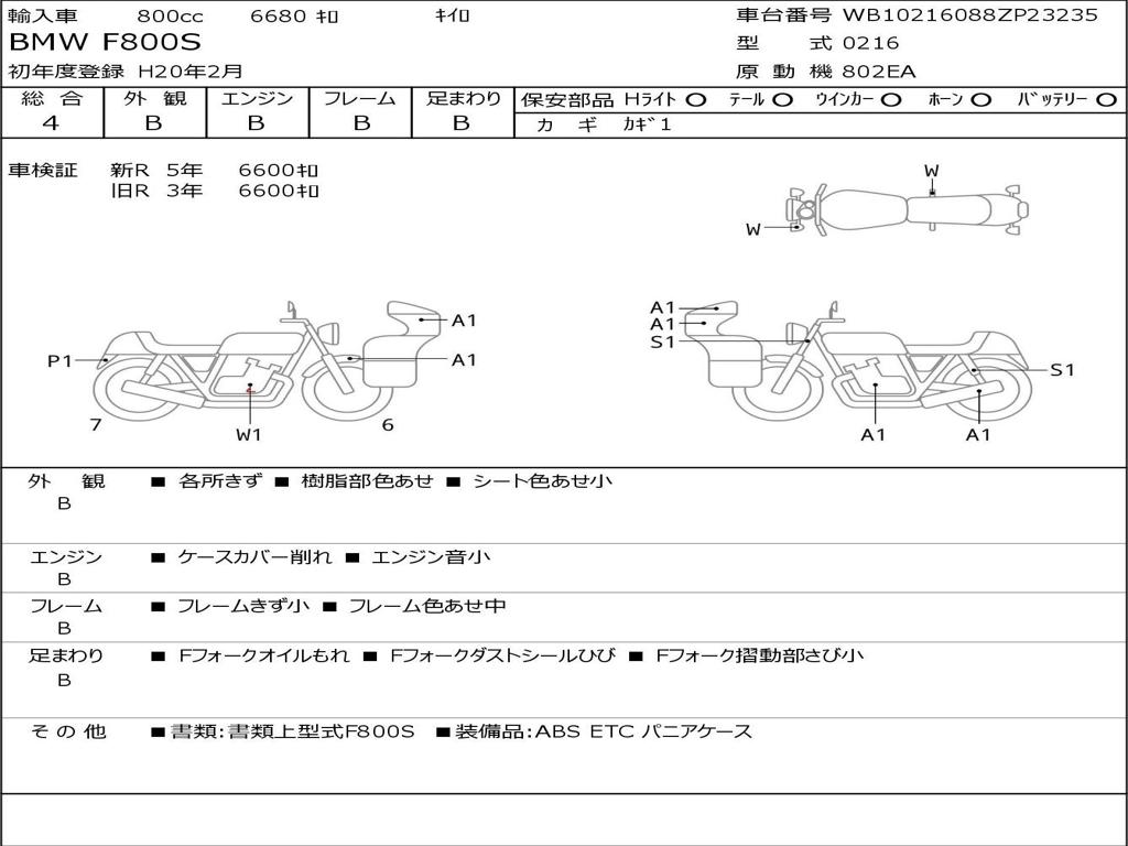 | Номер рамы / VIN | WB10216088ZP23235 |