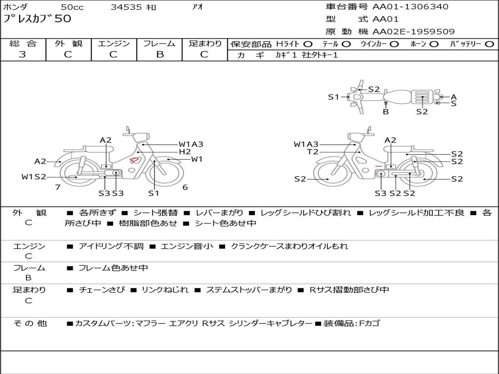 | Номер рамы / VIN | AA01-1306340 |