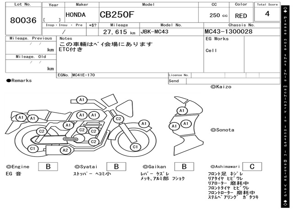 | Номер рамы / VIN | MC43-1300028 |