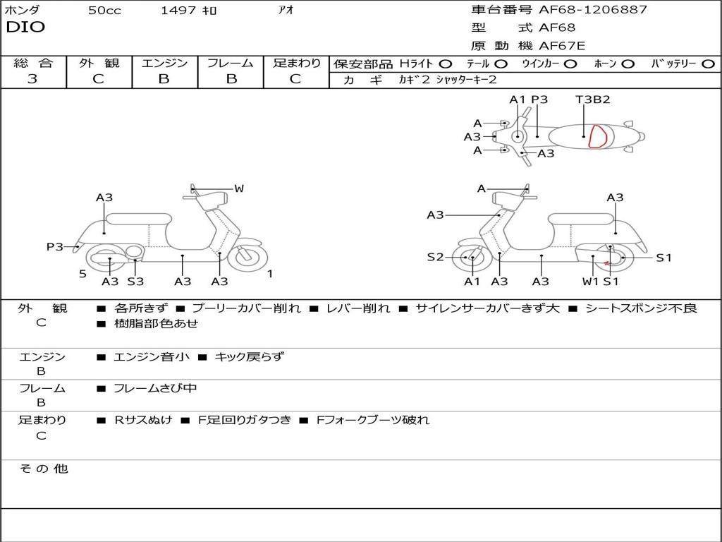 | Номер рамы / VIN | AF68-1206887 |