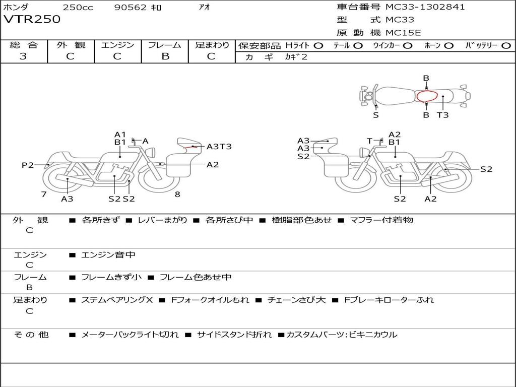 | Номер рамы / VIN | MC33-1302841 |